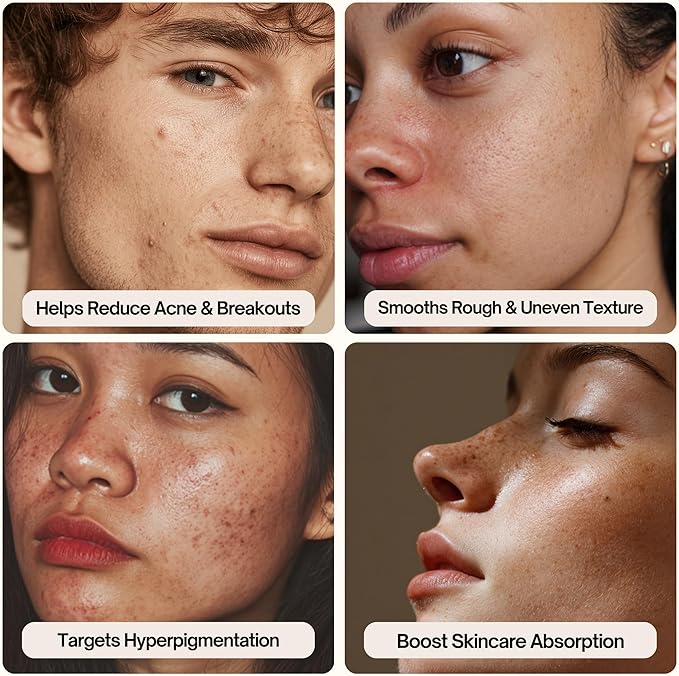 - FLAWLESS TEXTURE AWAITS: Our face exfoliator brush restores a smooth, refined surface by lifting away dull buildup and minimizing pore visibility. With 99.9% effective removal of dirt, oils, and impurities, it delivers a softer, fresher, and healthier glow.
