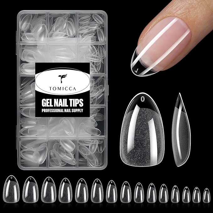 TOMICCA Short Almond Nail Tips, 15 Sizes 240Pcs Acrylic Nail Kit with Almond Nail Tips - Clear Press-On Nails for Extension, DIY Manicure Set, Gel & Acrylic Nail Tips Natural Fake Nails