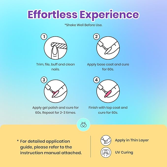 - Warm Tips: Beetles uv gel nail polish kit is professionally formulated for nail use only. Avoid contact with eyes and mouth. In case of contact, rinse with water immediately. If you feel unwell, discontinue use and seek medical attention. If you have any questions about the product, please do not hesitate to contact us.
