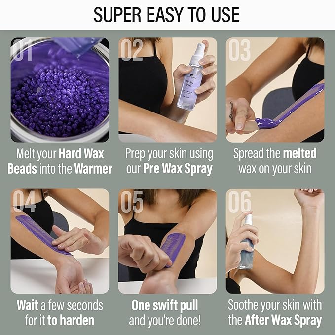- ALL YOU NEED FOR WAXING! Our complete wax kit includes a Digital Wax Warmer with temperature control | 5 Scented Hard Wax Bead Bags | 20 Large & 10 Small Waxing Sticks | 1 Pre-Wax Spray & 1 After-Wax Spray | 5 Protective Collars | & a "Wax Like a Pro" Guide. Basically, our all-in-one wax warmer kit includes everything you’d need for perfect at-home waxing.