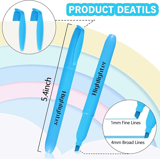 - Long Lasting & No Bleeding: The highlighters are designed to be used on a wide range of paper, such as newspapers, test papers, sticky note, notes, calendars, etc. Kid-safe, non-toxic, and won't penetrate typical paper. High-quality refills make coloring smoother and easier, and closing the pen cap after each use will make them more durable, more long lasting. Remember to be sure after use keep the pen cap closed to prevent the ink from drying out.