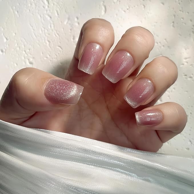 - 【Chic Mauve Plum Cat Eye Design】 Elegant short square nails in a glossy mauve plum shade, featuring a stunning cat eye shimmer finish that shifts with the light—perfect for both everyday elegance and special occasions.
