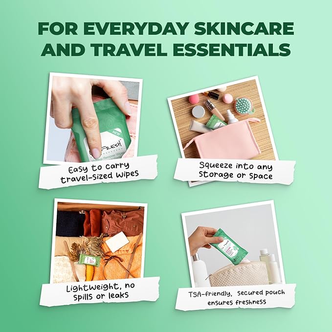 - Ready-to-Go Refresh – With TSA-friendly, secure pouches, LA Fresh makeup wipes remover keeps your skincare routine spill-free and easy to pack. Tuck them in your bag, purse, or pocket for hydration and refreshment anytime, anywhere.