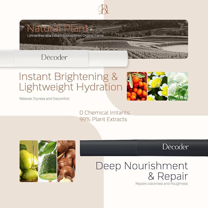 Decoder Day & Night Lip Care Set | 3 Lip Oils + 2 Night Lip Balms | Glossy Finish, Fast-Absorbing, Repair and Deep Nourishing | Stainless Steel Applicator, Vegan-Friendly, 5 x 0.05Oz