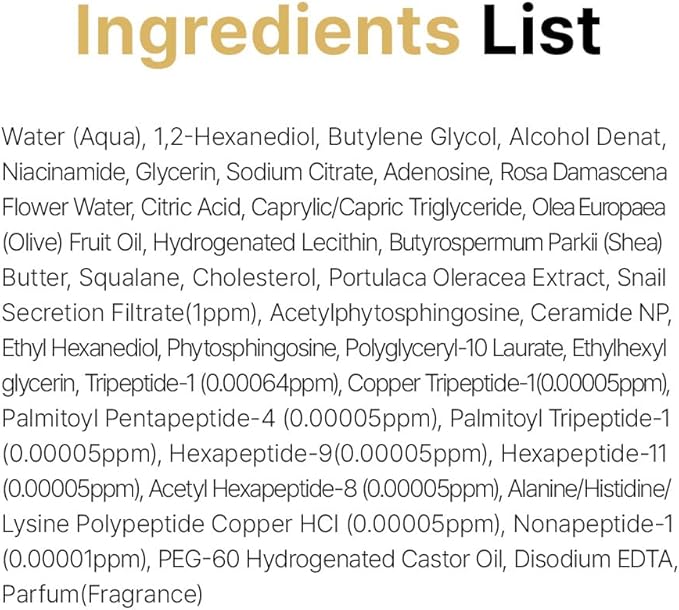 - [A Powerful Anti-Aging Blend]: Not only enriched with Peptides and Snail Secretion Filtrate, but also formulated with well-known skincare ingredients like Niacinamide, Glycerin, Adenosine, and Ceramide NP, this toner even out your skin tone for glowing skin, revives dull skin for providing radiance