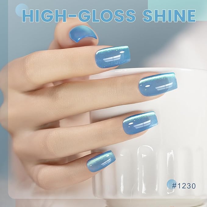- EASY TO USE:This cateyes gel polish is made with with natural resin ingredients,magnetic shimmers and a smooth formula,so this gel polish set won't cause smudges cracks,or chips.It can last for 21+ days with perfect shine under proper application
