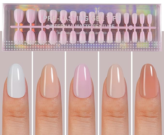 Short Oval Press On Nails, 5 Colors Pre-Lasting Soft Gel Nails Tips, 150Pcs Natural Fake Nails for Nail Art DIY 15 Sizes