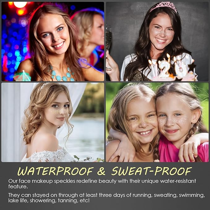 - 【Waterproof and Sweatproof, Long-lasting Effect】: With our makeup glitter speckle patches. They can stayed on through at least 3 days of running, sweating, swimming, lake life, showering, tanning, etc ! Our glitter make up patches stay in place and flawless finish whether you're hitting the gym, enjoying a day by the pool.