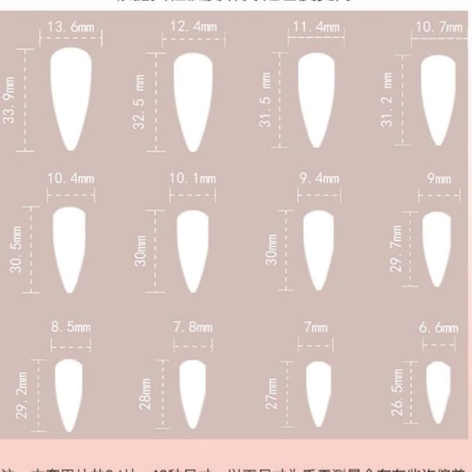 - Package About:Pink french tip press on nails.The package contains 24 Pcs of long almond press on nails of different sizes,1 adhesive tabs,1 small wooden stick,and 30 pieces nail glue stickers.You can safely choose a fake nail that fits your finger size
