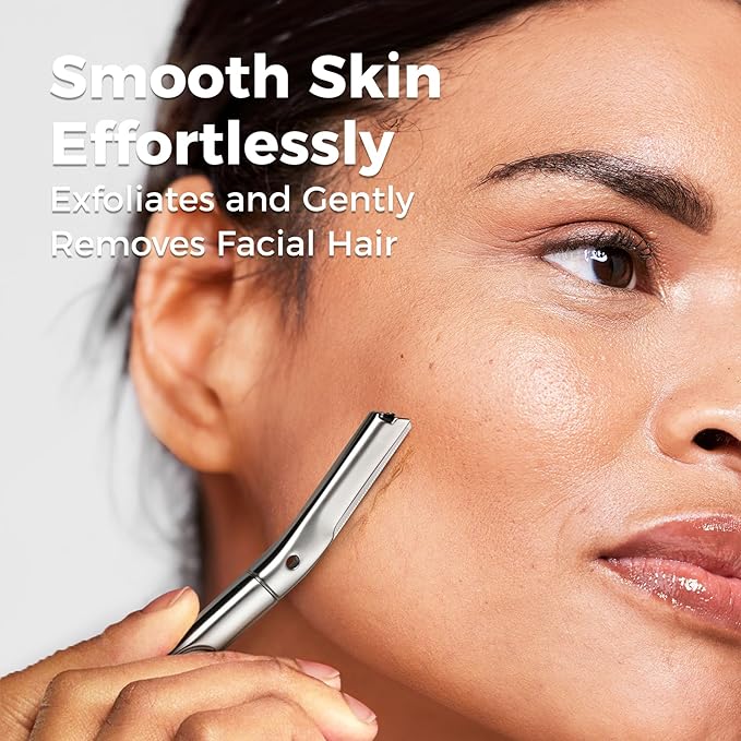 - SAFE & EFFECTIVE DERMAPLANE: ZOMCHI eyebrow razor features precision blades designed with protective micro-guards for gentle and irritation-free hair removal and exfoliation. Safely removes peach fuzz, unwanted hair, and dead skin from your forehead, cheeks, chin, eyebrows, upper lip, and bikini area in minutes—leaving your skin instantly smooth and refreshed without nicks or cuts.