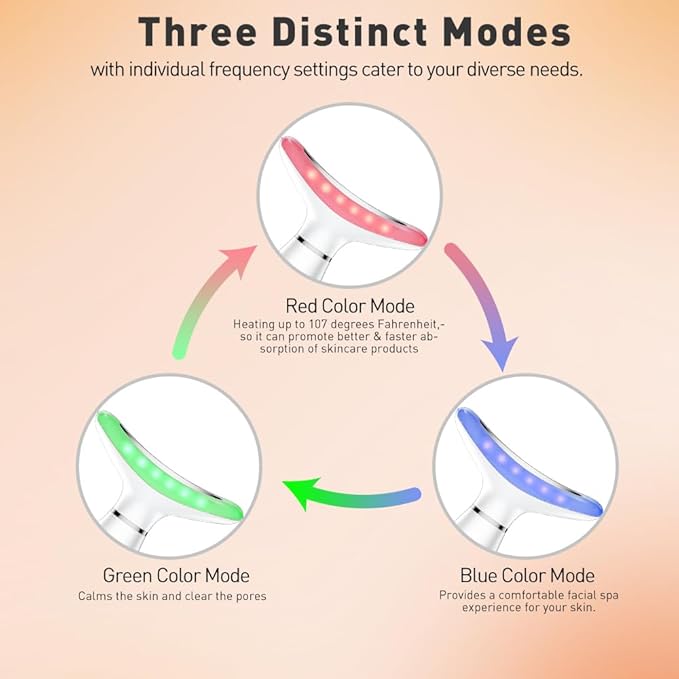 - 3 Color Mode Face Massager: Our product has 3 massage modes, including Clean, MSG and Hot Mode, with heat and vibration on the face and neck skin, can greatly help you relax and use it with skin-care products, such as serums, moisturizers, creams for a better effect