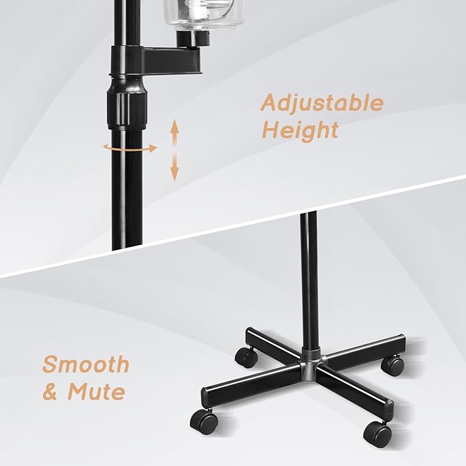 - 【Adjustable & Movable】- The height can be adjusted to 47.2 inches, fit for shampoo chair or massage table. A great skin care device for barber shop / beauty salon. With four rolling casters, you can take it around house or studio with no effort.