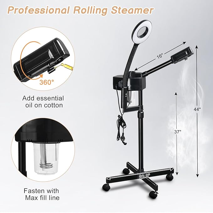 - 【Moisturizes The Skin】 The warm steam helps to hydrate your skin, which makes you feel relaxed and comfortable. Heat fast and produce a good a amount of strong steam. A good professional facial steamer for estheticians.