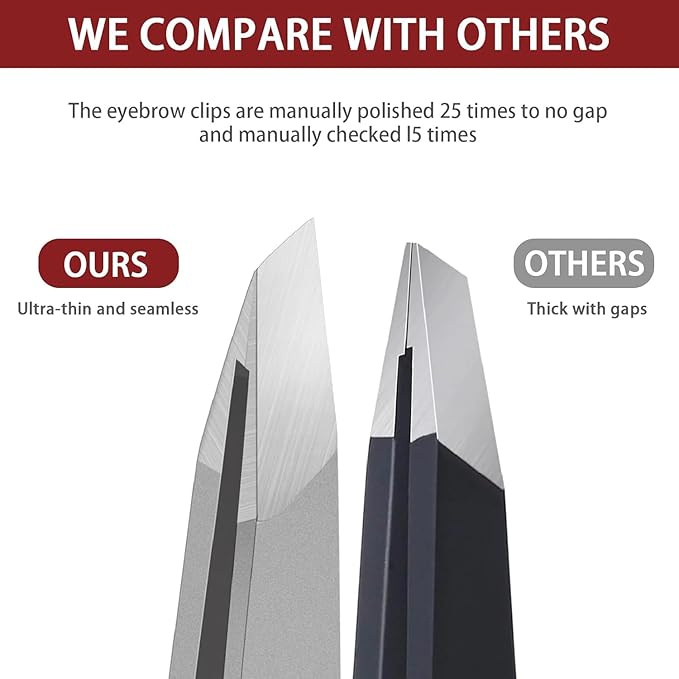 - Premium Stainless Steel Construction: The precision tweezers Built from durable stainless steel, these eyebrow tweezers are not only rust-resistant but also offer long-lasting performance. The high-grade material ensures that the tweezer maintain their sharpness and precision over time, while also being easy to clean and sanitize, making them perfect for both women and man use