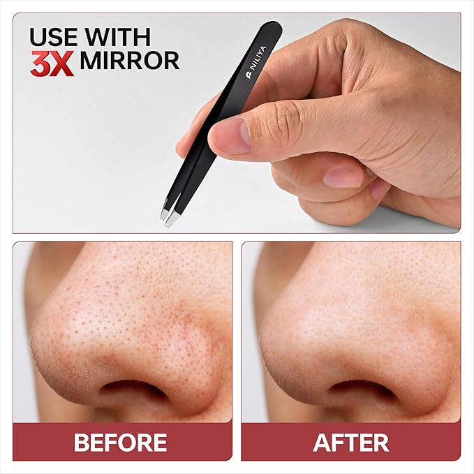 - Dual-Functionality for Eyebrows and Blackheads: These versatile tweezers serve as a two-in-one tool for your skincare routine. Whether you need to shape and define your eyebrows or remove blackheads and other impurities, this tweezers for women facial hair removal is designed to do it all. The diagonal tip is carefully crafted to work efficiently for both tasks, offering professional results from the comfort of your home