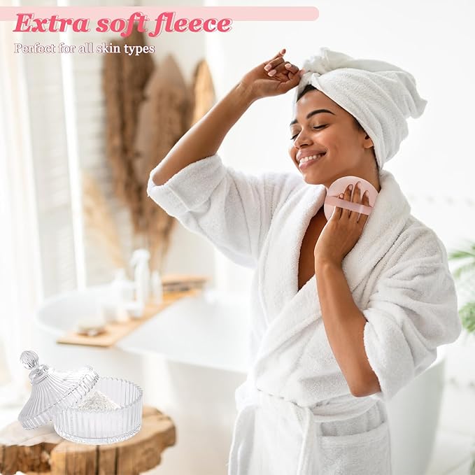 - Ideal Gift & Travel Companion: Surprise friends or loved ones with this large powder puff and container set, a thoughtful present for birthdays, holidays, or spa-themed parties. The compact, 6-inch glass powder container with puff fits seamlessly into most travel bags, ensuring you can maintain a fresh, polished look anywhere you go. Elevate your beauty routine with the perfect body puff and container duo that combines convenience and style.