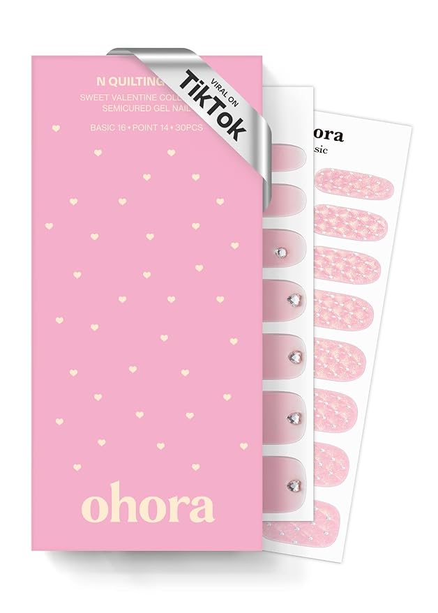 ohora Semi Cured Gel Nail Strips (N Quilting Pink) - Pink, Works with Any UV/LED Lamps, Salon-Quality, Long Lasting, Easy to Apply & Remove - Includes 2 Prep Pads, Nail File & Wooden Stick