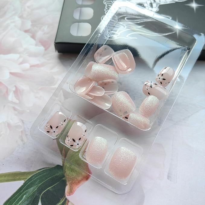 - Flower Nails Kit : 24 PCS ,12 different sizes of short press on nails , 24 jelly glue, 1 nail file, 1 wooden stick.full range of tools meet all your wearing needs. It can be worn repeatedly so that you can replace it at any time