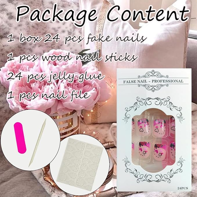 - Valentine's Day Nails Kit : 24 PCS ,12 different sizes of Valentine's day press on nails short nails, 24 jelly glue, 1 nail file, 1 wooden stick.full range of tools meet all your wearing needs. It can be worn repeatedly so that you can replace it at any time