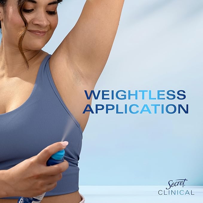 - WEIGHTLESS DRY SPRAY - The Secret Clinical Strength Antiperspirant features a weightless formula that dries quickly, allowing you to apply it without worrying about residue on your skin or clothes
