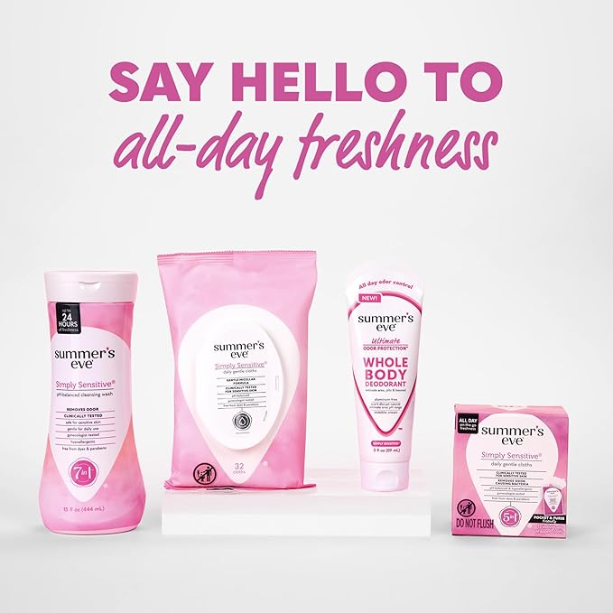 - SIMPLY SENSITIVE: Enjoy Summer’s Eve proven scent in a subtle floral fragrance in a convenient 3 oz bottle for the perfect travel deodorant for your gym bag