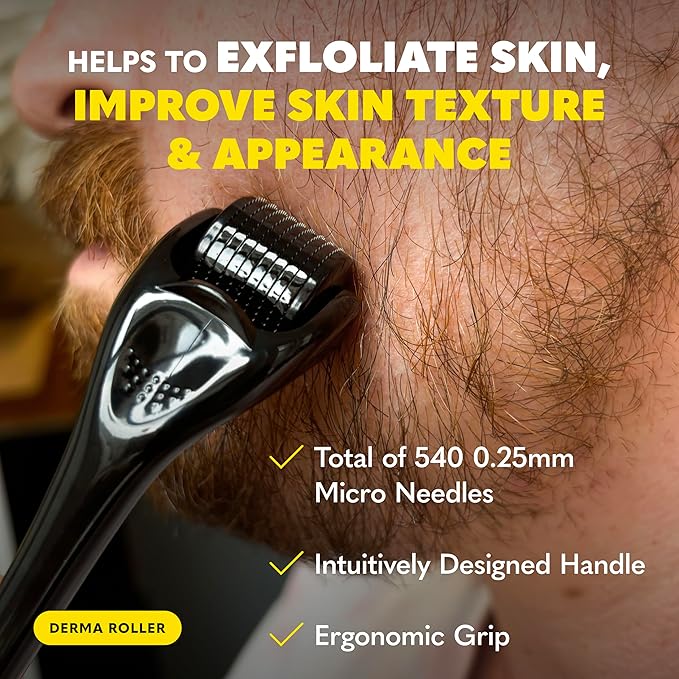 - Beard Derma Roller - Equipped with 540 titanium coated 0.25mm needles our beard roller is designed for optimal performance and durability for face, scalp and skin refreshment