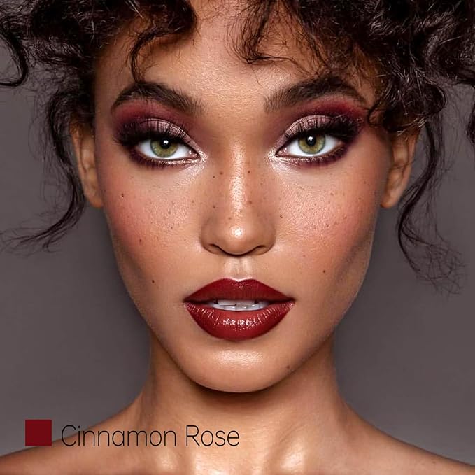 - Cinnamon Rose: A rich wine-toned lipstick that combines glossy hydration with a subtle brown undertone. Nourishes and protects dry, cracked lips while delivering lasting color