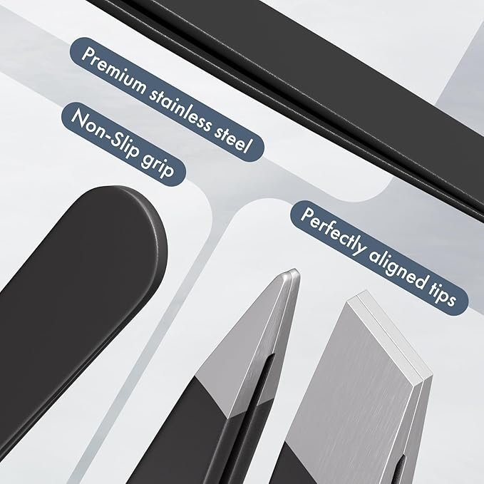 - Perfectly Aligned Tips: Each precision tweezers in this set features perfectly aligned tips, enabling you to easily grab and remove even the finest hairs. Experience the difference quality craftsmanship makes in your beauty routine
