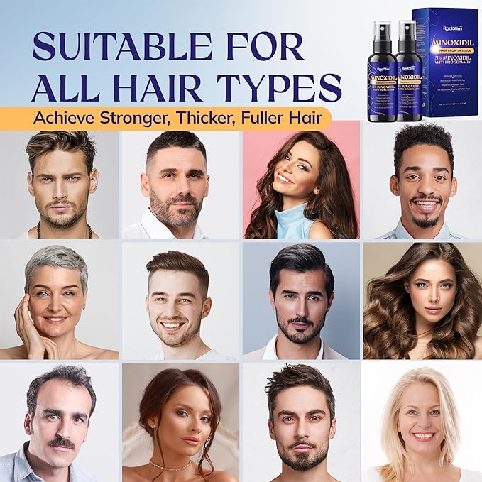 - 5% Minoxidil & Rosemary Formula – Clinically proven to revitalize thinning hair and support stronger, thicker, and fuller hair growth for both men and women. Dermatologist-recommended for visible hair regrowth results.