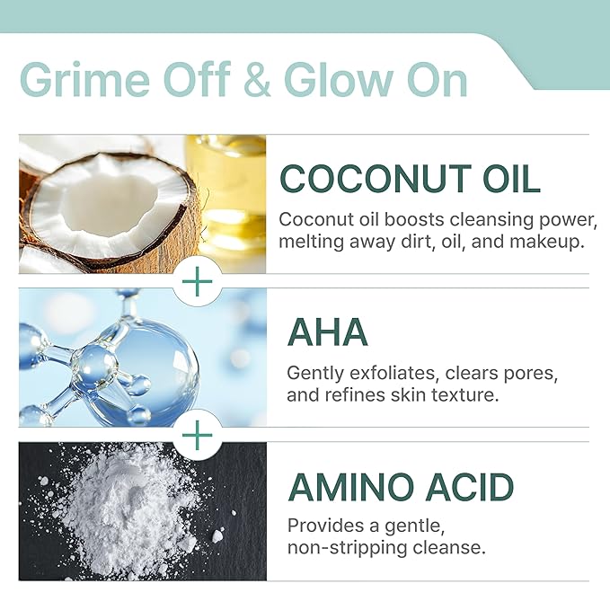 - REMOVES 99.7% OF IMPURITIES: With the power of coconut oil and AHA/BHA, it effectively removes sebum, blackheads, whiteheads, and dead skin cells, leaving your pores thoroughly clean.