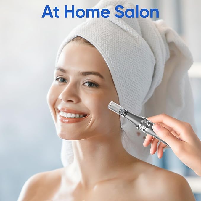 Microneedling Stamp Pen, Derma Stamp Pen, 0.25mm DermaStamp System, Derma Roller Alternative, Microneedle Micro Needle Skin Care Tool for Men Women Home Use