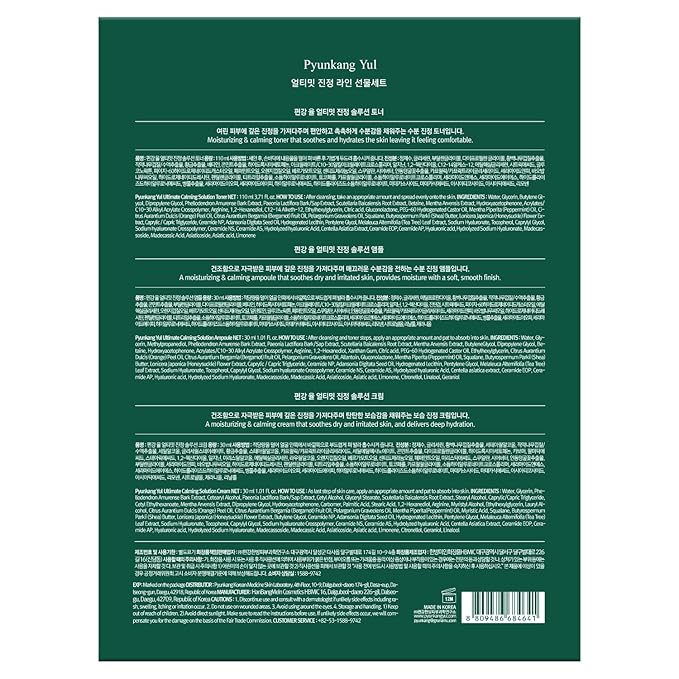 Pyunkang Yul Ultimate Line Skincare Set, Mother's day gift for mom, Calming Solution Toner, Ampoule & Cream, Traditional Korean-Style Packaging, Zero-Irritation (3-item set)