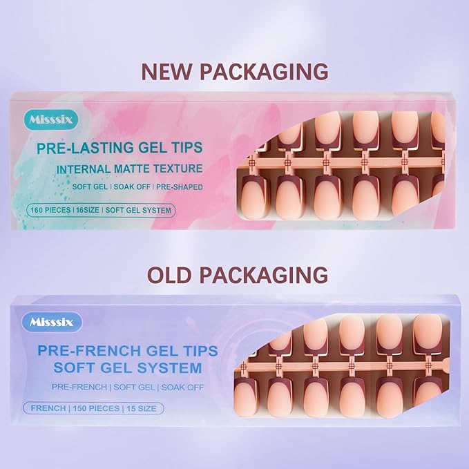 - 【3 IN 1 GEL FRENCH TIP NAIL】Misssix gel nail are made with high quality gel material, The nail tips choose inner frosted texture, which makes the nail back comes with a coarser matte, so that the nails are stronger adhesion with nail glue and not easy to fall off. Create a light-cured, preshaped nail enhancement in 15 minutes! Save more time.
