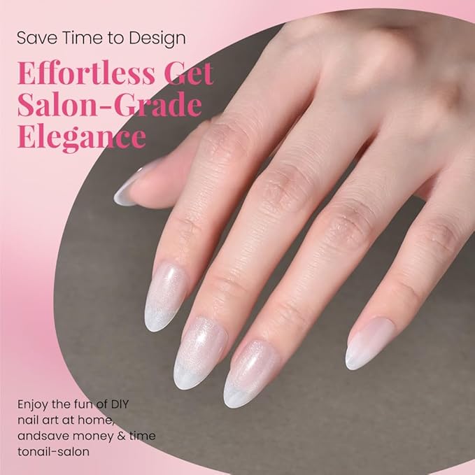 evpct Cat Eye Press on Nails Almond Short, Cat Eye Stick on Nails Press on, Pearl White Glitter Short Almond Press Glue on Nails, Fake Nails Press ons with glue, 30Pcs Reusable Acrylic Fake Nails Kit