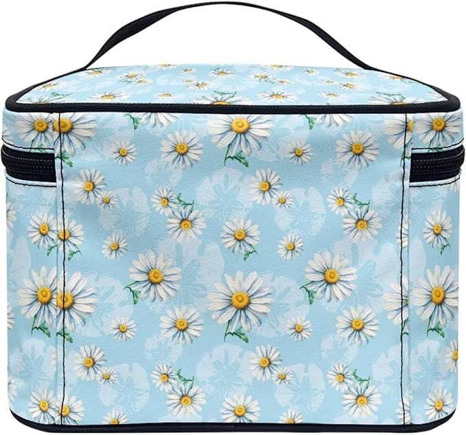 Daisy Flowers Blue Pattern Travel Makeup Bags for Women Portable Tote Cosmetic Case with Carry Handle Toiletry Accessories Storage Organizer Bags