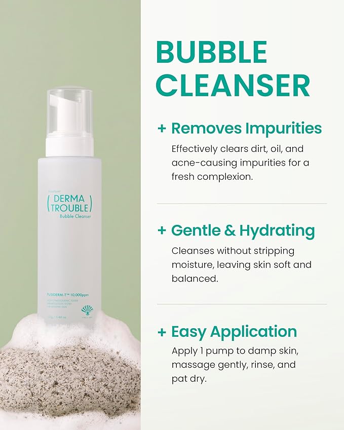 - FUSIDYNE DERMA TROUBLE BUBBLE CLEANSER (155ml/5.46fl oz) effectively cares for clogged pores, excess sebum, and trapped impurities with mild microbubbles, while soothing sensitive skin.