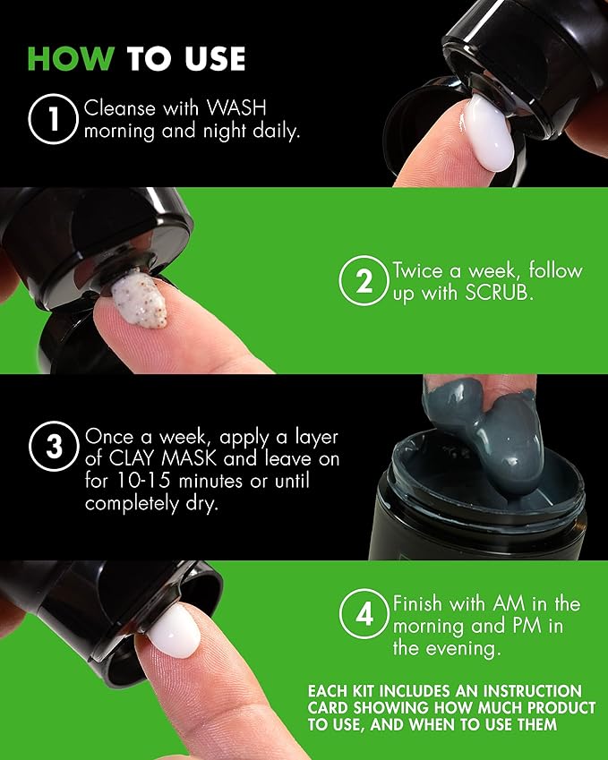 - Men’s Skin Care, Bigger & Better: Upgrade your skincare game with larger bottles, sleek packaging, and a 90-day supply designed to last. This set helps smooth, hydrate, and protect your skin while removing impurities for a clean, refreshed look. Includes Face Wash (5.5 oz), Exfoliating Scrub (2 oz), AM Moisturizer with SPF 20 (2.5 oz), PM Moisturizer (2 oz), Charcoal Clay Mask (2 oz), and a simplified usage guide.