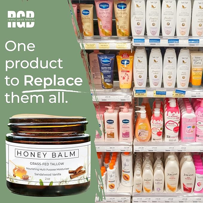 - THE LAST MOISTURIZER YOU’LL EVER NEED – If your daily moisturizer label reads like a science project, it’s time for an upgrade. This Tallow Honey Balm is pure, powerful, and built to solve dry skin, fine lines, and irritation for good. Use it on your face, hands, elbows, knees, feet, or anywhere your skin needs deep hydration and real relief. Healthy skin starts here.