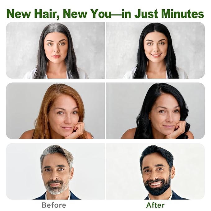 - Banish Grays with Confidence: Achieve complete gray coverage in just minutes with our 3-in-1 black shampoo color. Designed for men and women seeking a natural, youthful look, it instantly revitalizes dull strands and restores vibrant, salon-quality color at home.