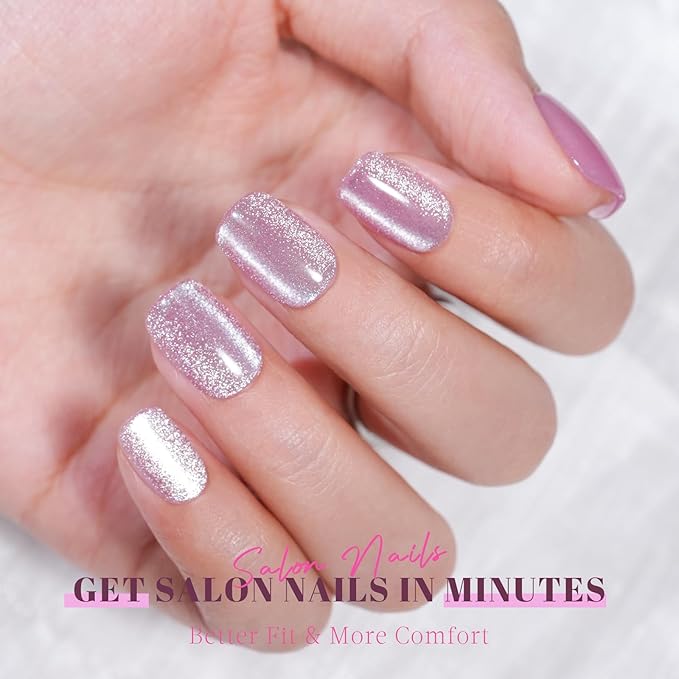 Pink Cat Eye Press on Nails Short, Jofay Fashion Soft Gel Fake Nails, Elegant Press on Nails, Reusable & Natural Acrylic False Nails, Stick on Nails for Women Girls Gift, Glue on Nails Kit 32 Pcs