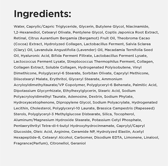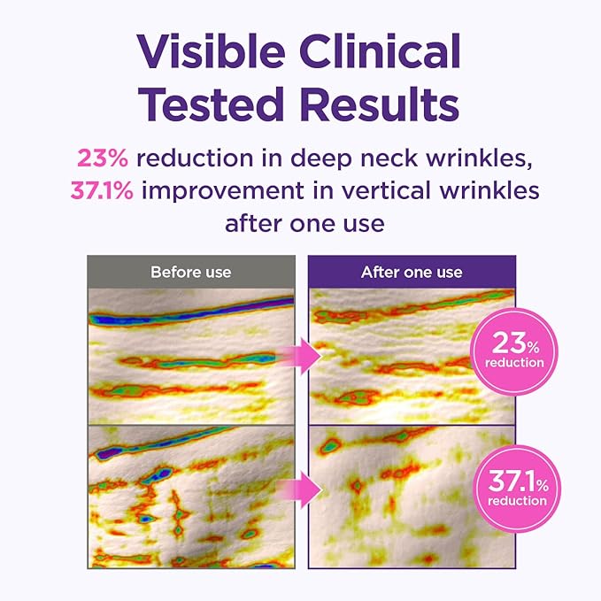 - DEEP WRINKLE REDUCTION: Formulated with 2x retinal (400ppm) and 300 Daltons low-molecular collagen, this neck cream visibly reduces horizontal and vertical neck wrinkles while boosting collagen synthesis for firmer, smoother skin.