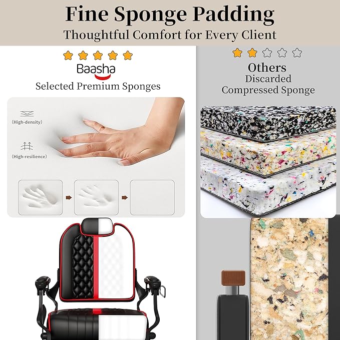 Baasha Professional Reclining Barber Chair with Adjustable Headrest, Hydraulic Heavy-Duty Base, Soft Upholstery & Thick Cushion, Tattoo & Hair Salon Chair, 550 lbs Capacity