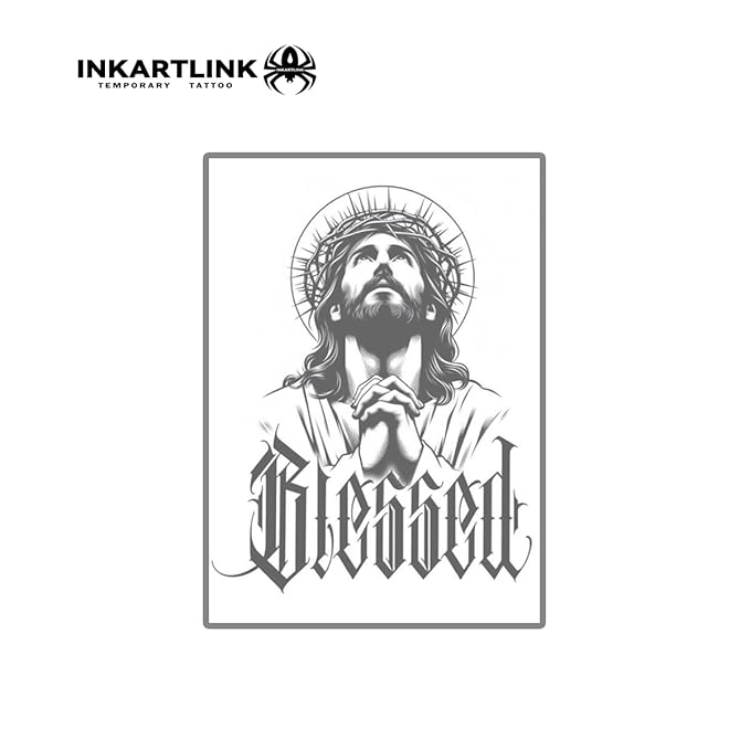 INKARTLINK Semi Permanent Tattoo, Temporary Tattoo, party tattoo, beautiful and realistic design, fun tattoo experience, cruelty-free, non-reflective, waterproof (Jesus)