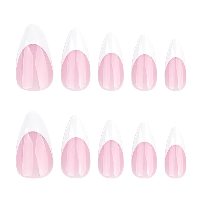 - French Tip Press on Nails: There are almond press on nails in one pack,Beautiful and fashion press on nails glossy false nails comes with has 12 different sizes. Brush the nail with a coat of polish if you want it to last longer