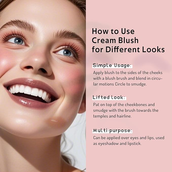 - VERSATILE CREAM BLUSH: This makeup cream Blush is suitable for various makeup needs, and can be applied to the cheeks, lips, and eyes. With a variety of color options, it enhances all skin tones for a natural, radiant finish.