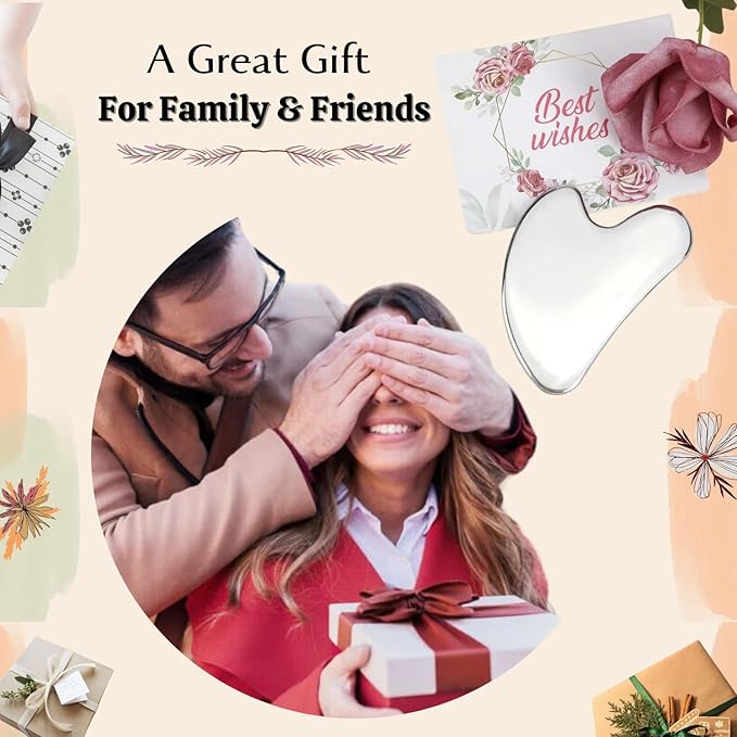 Stainless Steel Gua Sha Facial Tool, Gua Sha for Face, Body, Neck & Jawline Sculpting, Gua Sha Tool for Puffiness Reduction, Lymphatic Drainage,Ideal for self-Care or Gifting!