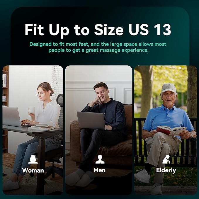 - Size up to 13": Snailax heated foot massage machine fits feet up to size 13, making it a perfect fit for the whole family. Whether you're unwinding after a strenuous workout, a long day at work, or preparing for a good night's sleep