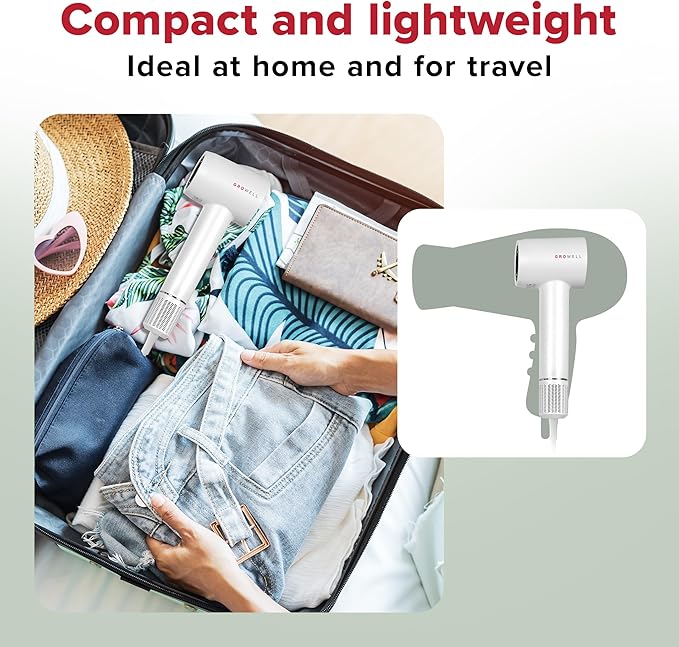 GroWell Ionic Hair Dryer, High-Speed Brushless Motor Professional Blow Dryer for Fast Drying, Low Noise, Lightweight, Compact Hair-Dryer with Diffuser for Curly Hair