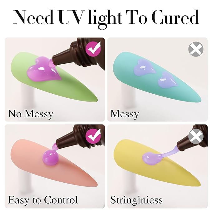 - 3D Sculpting Gel for Nail Art: The needle tube design for molding gel for nails don't need any tools. Simply squeeze and shape directly onto your nails. You can enjoy your nail art design at home with this clear nail sculpture gel. Can Mixed with other nail art products such as natural nails, nail tips, fake nails, false nails, acrylic nails, etc,. Required base top coat, and need to cure under nail lamp.