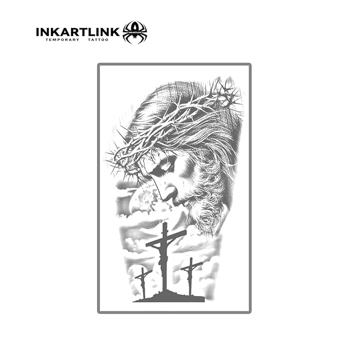 INKARTLINK Semi Permanent Tattoo, party tattoo, beautiful and realistic design, fun tattoo experience, cruelty-free, non-reflective, waterproof (Jesus 2)
